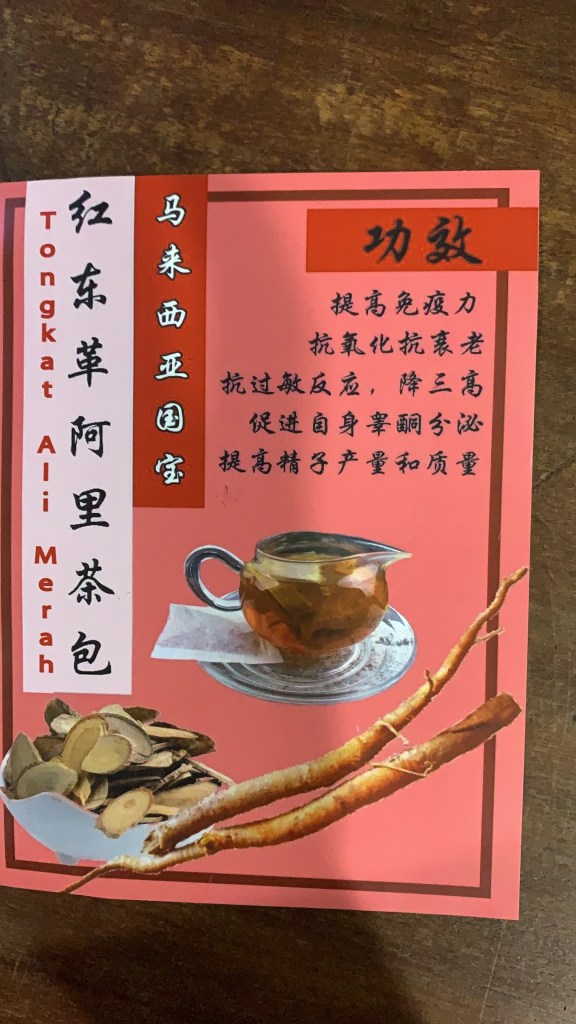 未知 的头像作者 hengchaikin发表于 7月 24, 20207月 27, 2021Leave a comment on 黑东革阿里茶包tongkat ali hitam Teh,性温滋阴補肾,壮筋骨。